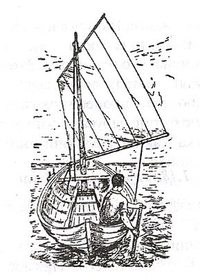 Рис. 28. Рейковый парус и управление кормовым веслом.