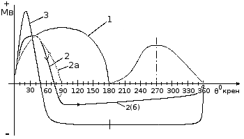На рис. 10.4 представлены диаграммы зависимости остойчивости, т. е. зависимости восстанавливающего момента (Mв ) от угла крена Θ° для килевой яхты — 1, для швертбота — 2, для катамарана — 3.