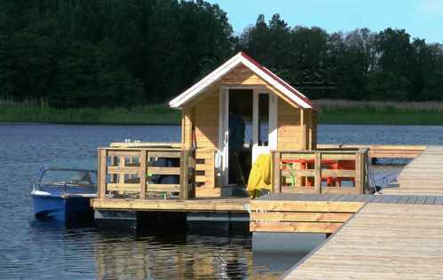понтон с габаритными размерами 8,0х5,0 м с установленным на него домиком для