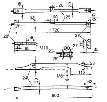 Рис. 54. Поперечина и бортовые продольные брусья швертового устройства (нумерацию позиций см. на рис. 53).