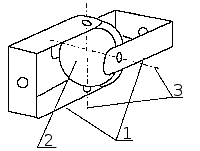Рис. 5.47. Шарнир Гука: 1 — «П»-образные детали, присоединяемые одна к гику, другая к оси привода; 2 — проставка соединительная «П»-деталей;3 — две взаимно перпендикулярные оси.