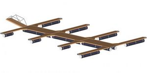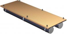 Деревянные плавучие понтоны на пластиковых поплавках просты в использовании. Они собираются с использованием готовых элементов конструкции, которые соединяются между собой с помощью гибких креплений.