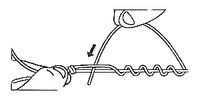Рыболовный узел «пришел» из нахлыстовой ловли. Обладает высокой грузоподъемностью. Довольно компактен, свободно проходит сквозь пропускные кольца удилища. Представляет собой комбинацию простого узла (монофильная леска) и узла типа «Клинч» («плетенка»).