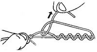 рабочий конец назад, пропустив его через образовавшийся промежуток около