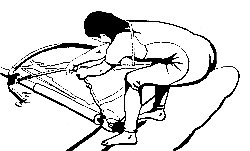 Шаг 2. Поставив ноги на ширину плеч на равном расстоянии от мачты, ухватитесь за старт-шкот обеими руками. Тяните старт-шкот на себя, причем старайтесь слишком не напрягать мышцы рук; вместо этого выпрямляйте ноги и отклоняйтесь немного назад, поднимая мачту всем телом.
