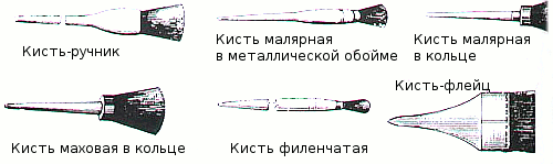 для окраски малых поверхностей - кисти - ручники круглые или плоские;