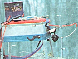 Для ужения по-английски берут крючки особой закалки: ведь частенько на маленький крючок нужно подсекать рыбу больших размеров с мощными челюстями, например карпа, к тому же на значительном расстоянии от берега. Среди приспособлений, которые могут понадобиться, следует упомянуть рогатки, созданные для заброса подкормки, и чемоданчики для хранения английских поплавков.