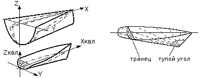 Любая ватерлиния на таком корпусе — в виде капли. Полноту обводов можно задавать в широких пределах формой линий борта и транца. Примерами такого способа являются корпуса катамаранов «Торнадо» и класса «В». Интересна также технология изготовления «граненых» стальных корпусов из листов разной толщины.