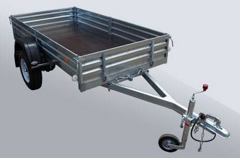 Подвеска прицепов может быть как рессорной (зависимая), так и резино-жгутовой (независимая). Грузоподъемность бортовых прицепов до 900кг. Прицепы для снегоходов полностью оцинкованные(метод горячего цинкования).
