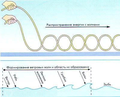 Внизу. Некоторые распространенные названия волн. Состояние моря —