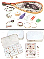 Рис. Вверху: Принадлежности для ужения на мушку; Внизу: Контейнеры для наборов сухих и мокрых мушек