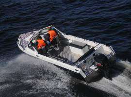Отличные ходовые качества, остойчивость, большое пространство для размещения экипажа и багажа, высокий борт и хорошая брызгозащищённость — вот отличительные черты этой модели.