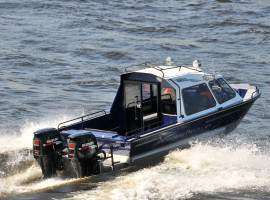 Высокий борт и хорошая брызгозащищённость, возможность установки двух мощных подвесных двигателей, просторный кормовой кокпит — всё это сделано для максимального удовольствия во время рыбалки, охоты и просто отдыха на воде.