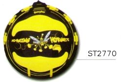 Этот буксируемый надувной круг Raging Hornet для 2 человек. Оснащен 6 мягкими ручками с неопреновой защитой, 2 захватами, облегчающими посадку, защитной подушкой, креплением для буксировки. Две камеры из ПВХ.