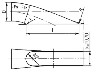 Для учета дополнительных энергетических потерь при использовании геометрически подобных насосов в составе водометов ηр последних снижен на 3 %. Геометрические элементы рабочих колес и спрямляющих аппаратов указанных насосов приведены на рис. 14 и 15.