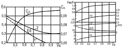 — оптимальное значение относительной скорости струи на срезе, где — коэффициент гидравлических