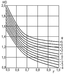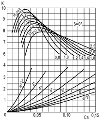 Рис. 14. Геометрические соотношения для четырехлопастных роторов (dст = 0,5; А/Аd = 1/1).