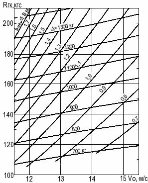 По диапазону ∆ и Vo эта диаграмма применима для глиссирующих катеров длиной 4,5-5,5 м, оснащенных двигателями N = 50-100 л. с. При помощи такой диаграммы при известных Rг.к, Vo, xg и βк вначале определяются ∆ и bопт, а затем рассчитывается пропульсивный КПД движителя: