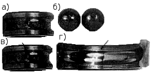 Рис. 18. Виды (а-г) недопустимых дефектов колец и шариков.