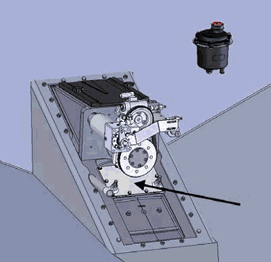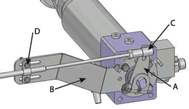 Управление реверсивной заслонкой осуществляется с помощью гидравлического цилиндра водомета, который управляется механическим способом через кабель. Кабель (рис. 19, C) управляет регулятором клапана (A). Цилиндр получает мощность от масляного насоса, встроенного в водометную установку. Рисунок 19. Гидравлический цилиндр |