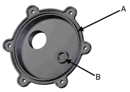 - Установите крышку на место. Необходимо проверить правильность положенияуплотнителя крышки в паз (рис. 24, точка A). Следует также проверить правильность положения крышки, чтобы пружина была вровень с опорой (рис. 24, точка B).