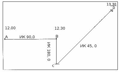 Предположим, что судно вышло из точки А в 12 час 00 мин и следовало в точку В истинным курсом ИК = 90°,0 со скоростью 16 узлов до 12 час 30 мин, затем без изменения скорости легко на ИК = 180°,0 и через 15 мин. (точка С) повернуло на ИК = 45°,0, которым следовало 45 мин. до якорной стоянки (точка D). Графическое построение пути движения этого судна без учета ветра и течения показано на рис. 203.
