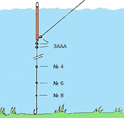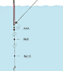 Рис. Фиксированное (глухое) соединение поплавка с леской