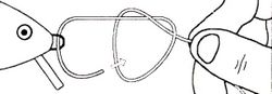 конца лески сформируйте простой узел, не затягивая его. Проденьте свободный