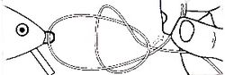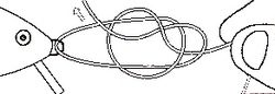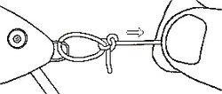 рабочий конец через узел, как показано на схеме. Легонечко подтяните рабочий