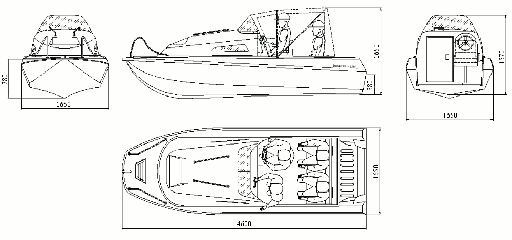 Схема лодки Казанка 5М4 с каютой с пассажирами на борту