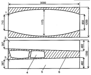 мм); 2 - внешний стрингер, 3 - внутренний стрингер; 4 - привальный брус; 5 -