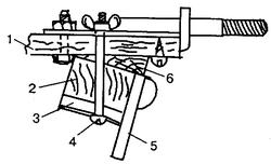 гайка-барашек; 2, 6 - шайбы; 3 - шайба-накладка (приклеить эпоксидным клеем); 4