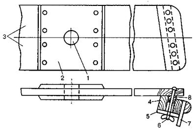 - обшивка борта; 8 - прокладка (дерево)