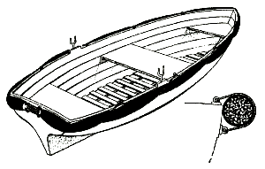 Кроме того, отсутствие вдоль бортов запалубленных участков приводит к зачерпыванию воды при динамических наклонениях. Для воспрепятствования этому лодки подобной конструкции могут оборудоваться «кранцами плавучести», которые выполняются в виде цилиндрических чехлов, наполненных гидрофобным материалом с положительной плавучестью (пробка, пенопласт и т.п.) (Рис. 32) или в виде надувных баллонов. Сегодня подобный принцип используется и на лодках с иными обводами, прежде всего на лодках т.н. жестко-надувной конструкции (упоминавшиеся выше RIB).