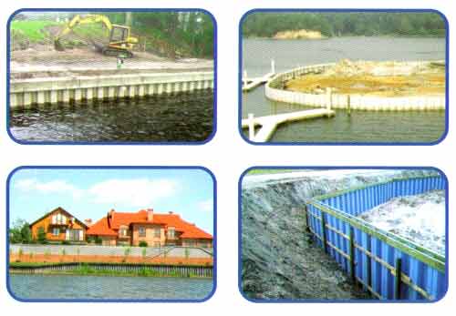 Области использования пластиковых шпунтовых свай распространяются на все сферы строительства - начиная от традиционного строительства гидротехнических сооружений и подземных сооружений, инженерных сооружений, путей сообщения и заканчивая охраной окружающей среды.