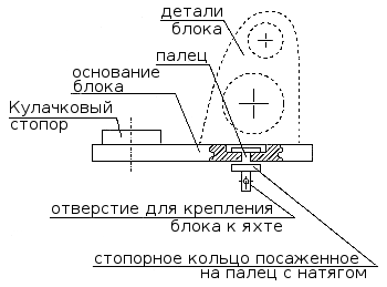 Блоки, прикрепляемые к палубе с помощью вертлюга или такелажных скоб под своим весом ложатся на поверхность и могут стучать по ней или царапать ее. В таких случаях поверх соединяемых деталей ставят широкую пружину или кусок гофрированного шланга (от противогаза, например).