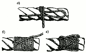 Марка со змейкой представляет собой уже описанную на с. 56 простую марку, но дополненную так называемой змейкой. Змейку делают концом того же линя, которым выполнена марка.