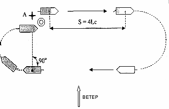 Рис. 268. Схема подхода к упавшему за борт на обратном курсе.