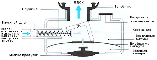 В диафрагменных первых ступенях с вдохом дайвера диафрагма прогибается внутрь и давит на шток, который открывает клапан высокого давления, пропускающий дыхательную смесь. Когда вдох прекращается, диафрагма возвращается в свое нормальное положение, и пружина высокого давления закрывает клапан.