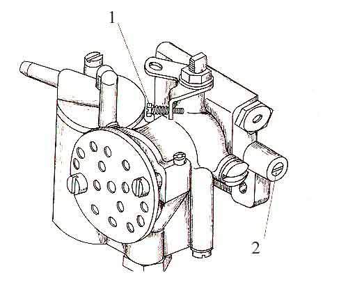 Карбюратор имеет два регулировочных элемента: винт peгулировки качества смеси малого газа и винт регулировки холостого хода.