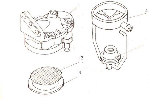 Засорение фильтра топливного насоса и, как следствие этого, уменьшение количества подаваемого к карбюратору топлива.
