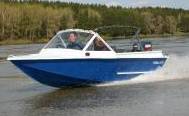 Томь 475 – скоростной водомётный 5-ти местный глиссирующий алюминиевый катер под подвесной лодочный мотор, с открытым кокпитом - в случае необходимости легко закрываемый быстро трансформируемым тентом.