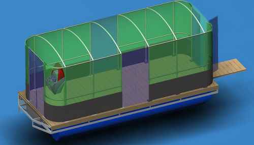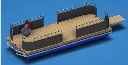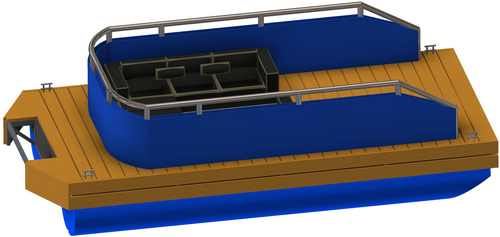 Настил выполнен из импрегнированной доски хвойных пород (сосна). В кормовой части понтона расположен выносной транец.