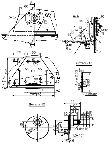 12 - эксцентрик, сталь; 4 отв. М6 сверлить совместно с дет. 13 (2 шт.);