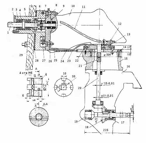 привод управления реверсом; 28 - прокладка; 29 - транец.