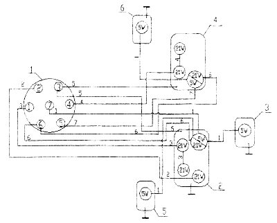 Рис 4: 1- вилка, 2- фонарь задний левый, 3- фонарь освещения номерного знака, 4- фонарь задний правый, 5- фонарь передний габаритный левый, 6- фонарь передний габаритный правый.