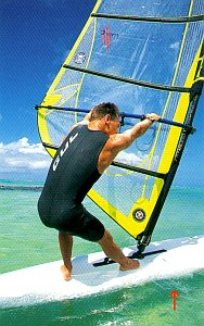 Уваливание, или поворот доски по ветру, увеличивает объем воздуха, направляемого в парус, и, следовательно, увеличивает силу тяги. Это поможет вам вновь привести доску для виндсерфинга в движение, если до того вы повернули ее слишком круто против ветра, или немного увеличить скорость, если доска замедлила свой ход. Наклон мачты и паруса к носу доски приведет к тому, что она повернет по ветру, или увалится.