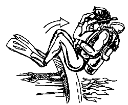Гигантский шаг — наилучший способ входа в воду в большинстве случаев, когда вы погружаетесь с надувной лодки или маленького катера, идеальны способом будет кувырок назад через голову.