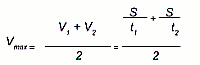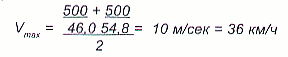 Предположим, что при S = 500 м судоводитель определил время t1 = 46.0 сек. и t2 = 8 сек. Нужно определить максимальную скорость.