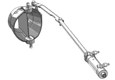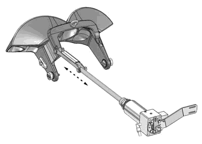 С помощью рычага выполняется механическое управление гидравлической системой (кабель управляет клапаном цилиндра). Реверсивную заслонку можно опустить перед реактивной струей с помощью гидравлики, что вызовет разворот судна (рис. 5). Рисунок 5. Опускание реверсивной заслонки |